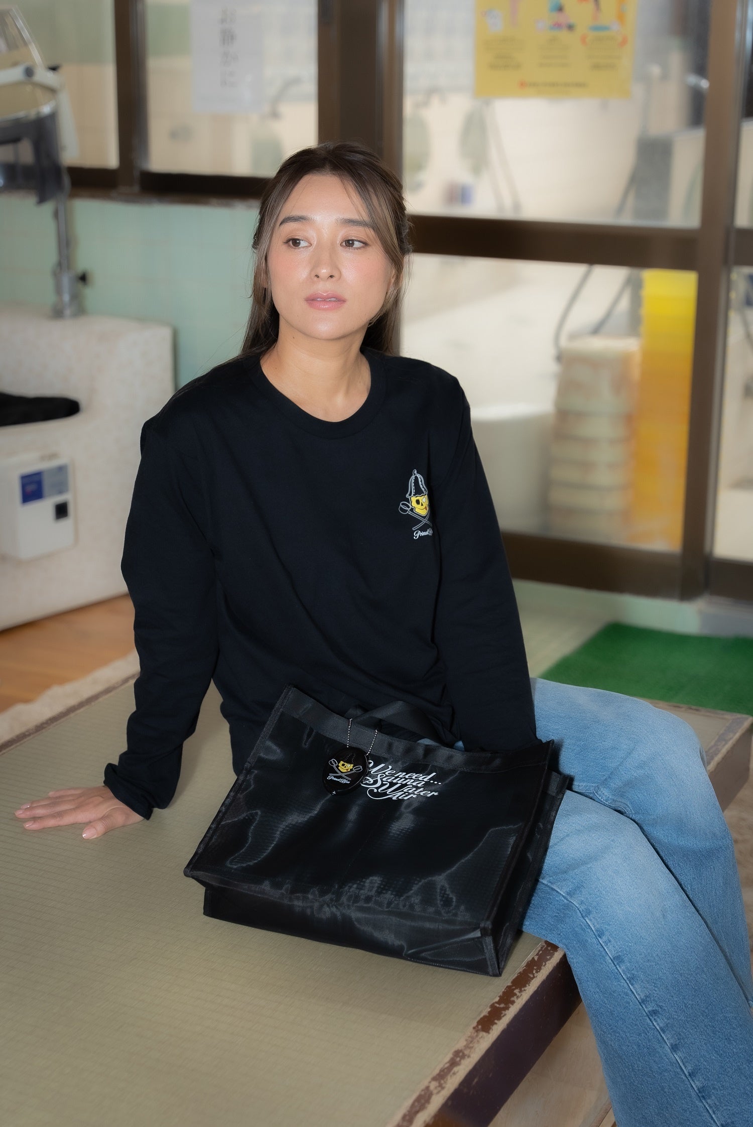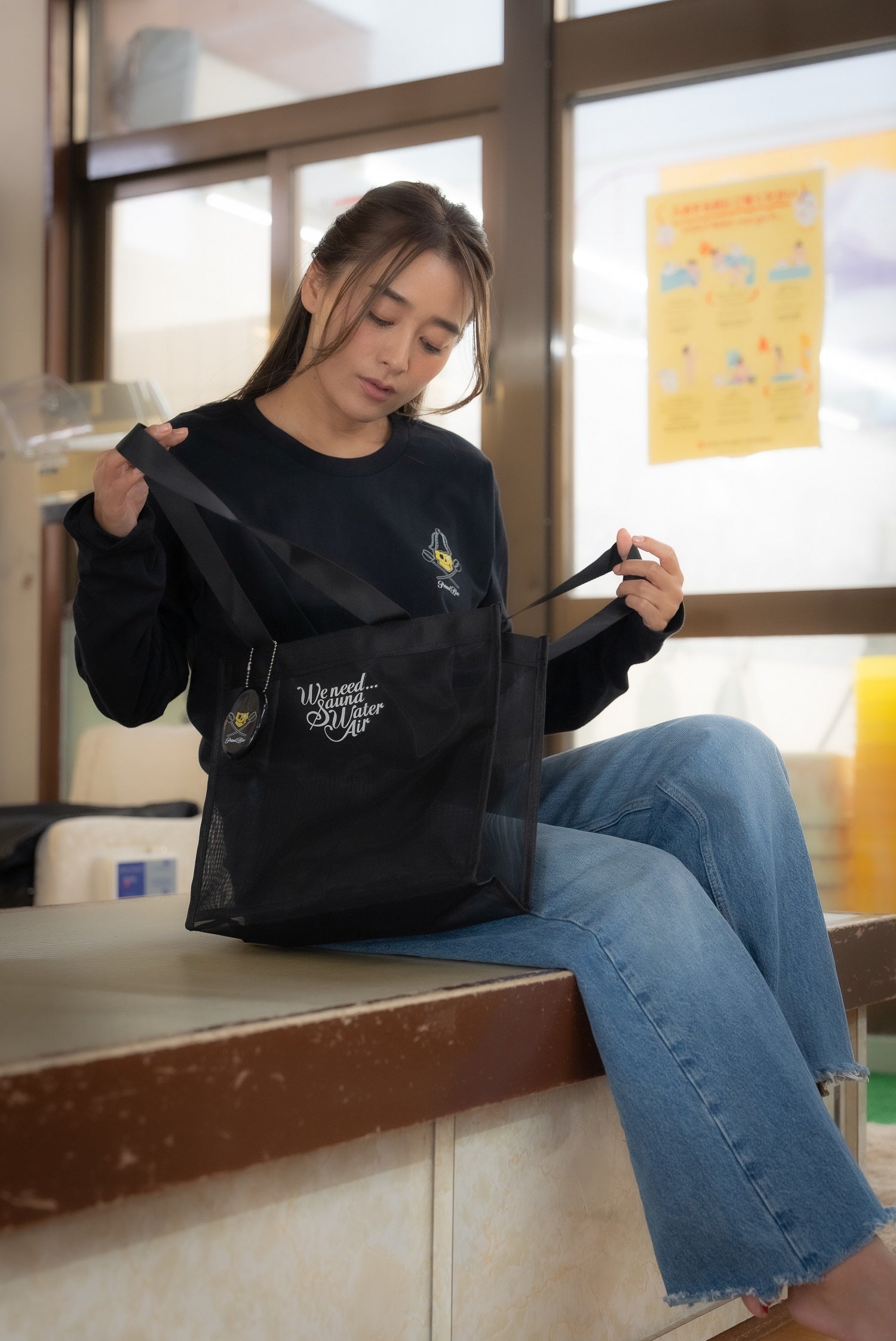 メッシュトートバッグなのでサウナ施設や銭湯など浴場に持って入って濡れても安心です。