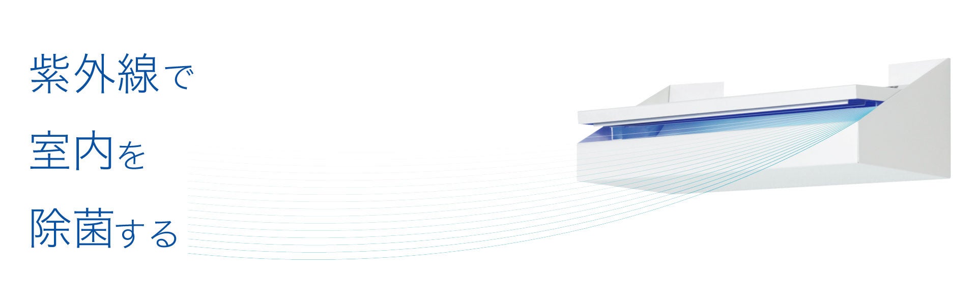 紫外線照射装置(UVGI)はCDC(米国疾病予防管理センター)発行ガイドラインでも空気安全対策に有効な方法として記載されています。この有効性を活用して室内空間の除菌をおこないます。