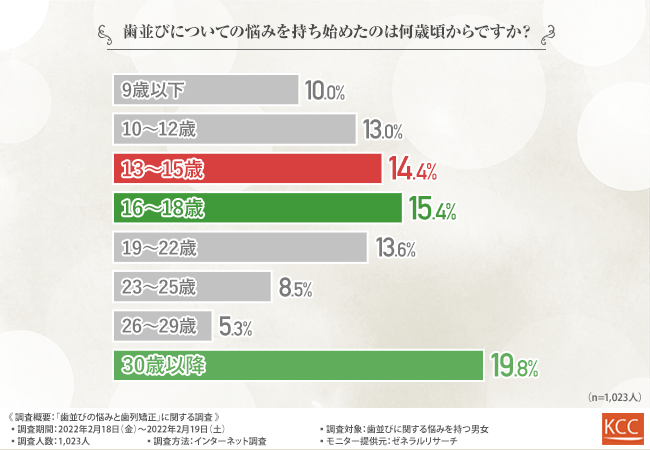 - 自分の歯並びが気になり始めたのはいつ頃?気づいた年齢とお悩み歴