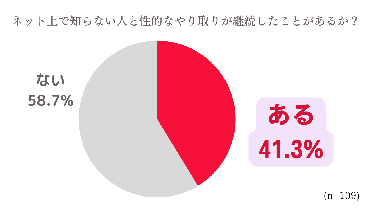 さらに、「ネット上で知らない人と性的なメッセージのやり取りが続いたことがあるか」には約4割が「ある」と回答。一方的な送り付け被害だけでなく、グルーミングやリベンジポルノに発展する被害への入口も、身近にあることが分かる。