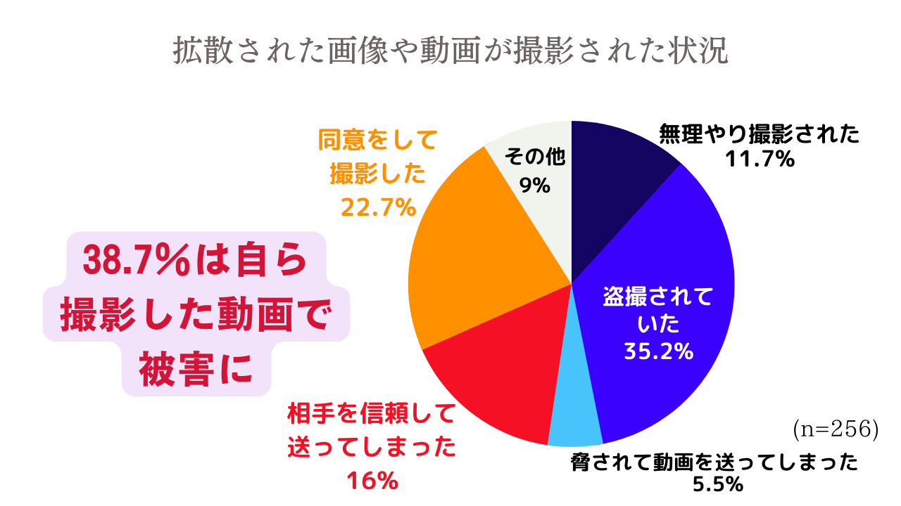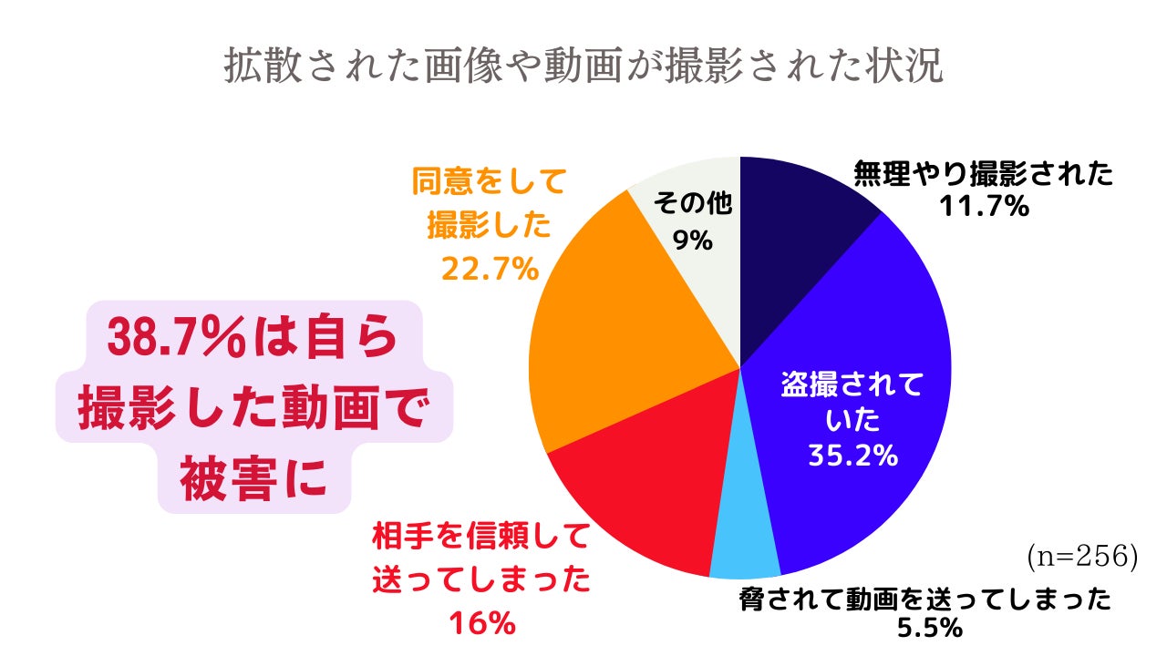 一方、「無理やり撮影された」「脅されて動画を送ってしまった」というケースは2割にとどまった。