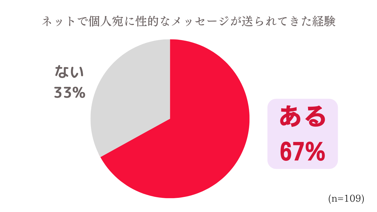 「ネットで知らない人から、個人宛に性的なメッセージが送られてきたことがあるか」に約7割が「ある」と回答。