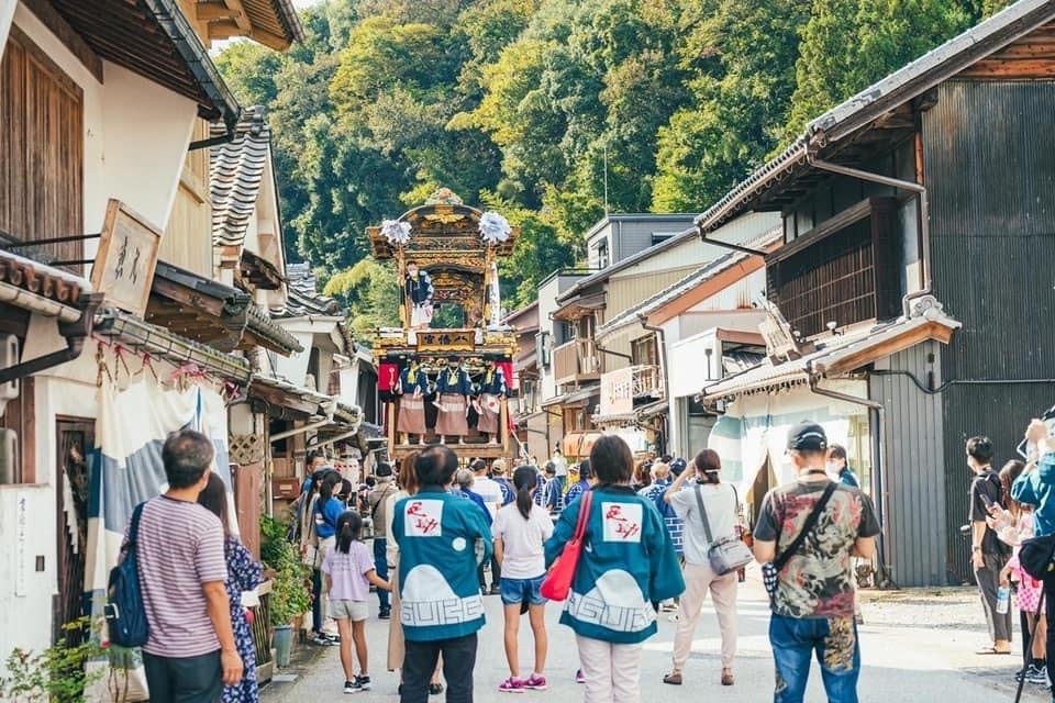 足助町は愛知県豊田市中心部から車で30分、名古屋から車で1時間の中山間地域に位置し、かつては街道の商家町として栄え、今でも重要伝統的建築物群保存地区として選定された美しい町並みが残ります。町のすぐ側には紅葉の名所「香嵐渓」があり、毎年秋には40万人の観光客が訪れます。