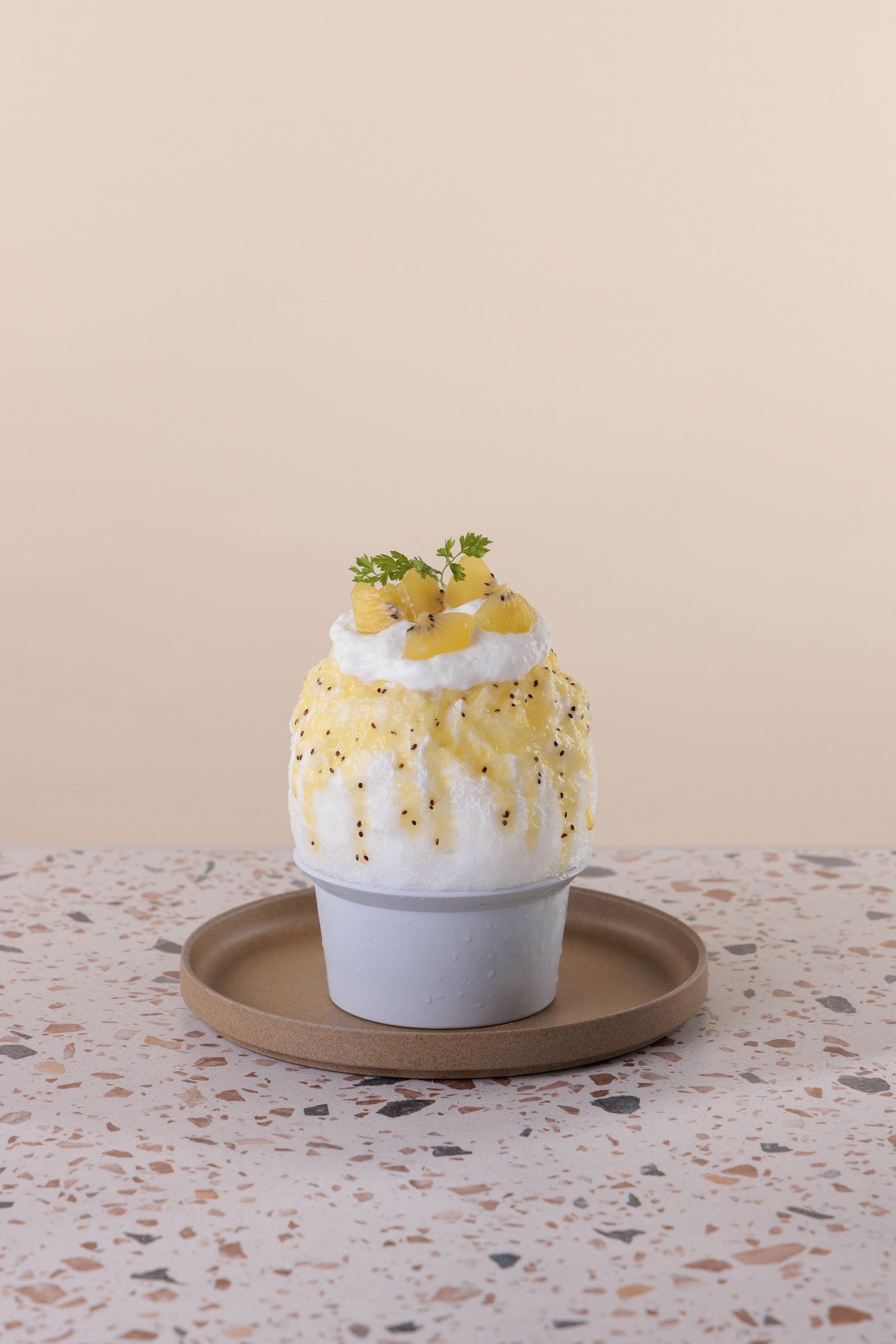 レモンのさっぱり爽やかな味わいと、ベースに忍ばせたミルクシロップのコントラストで奥行のある味わいに。ほんのりレモンが香るカスタードソースも氷と絶妙にマッチし、どんどん食べ進められます。パッションシードが見た目にも触感にも楽しいひとしなです。