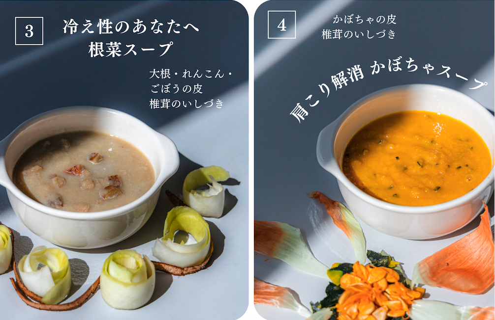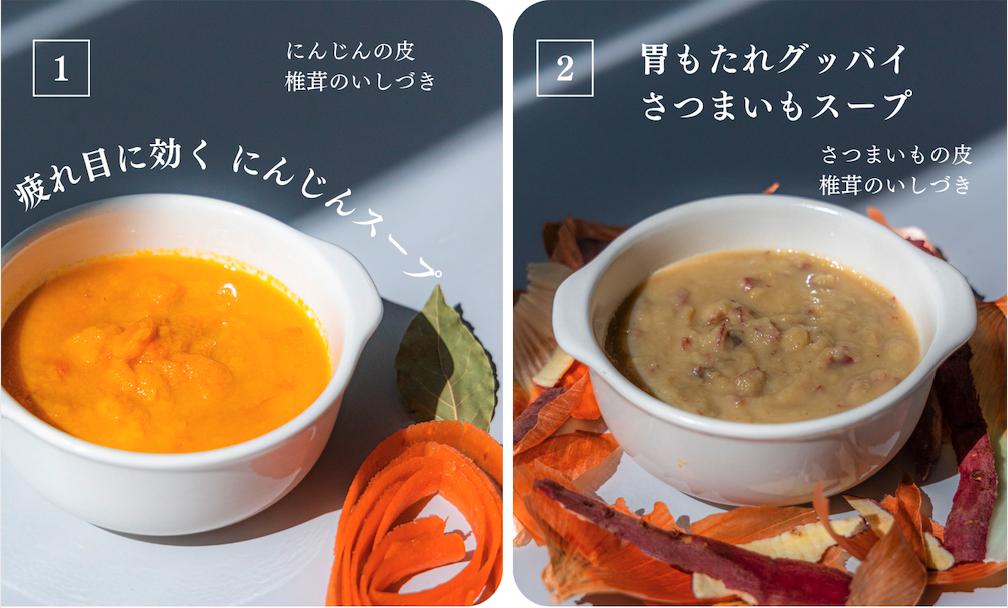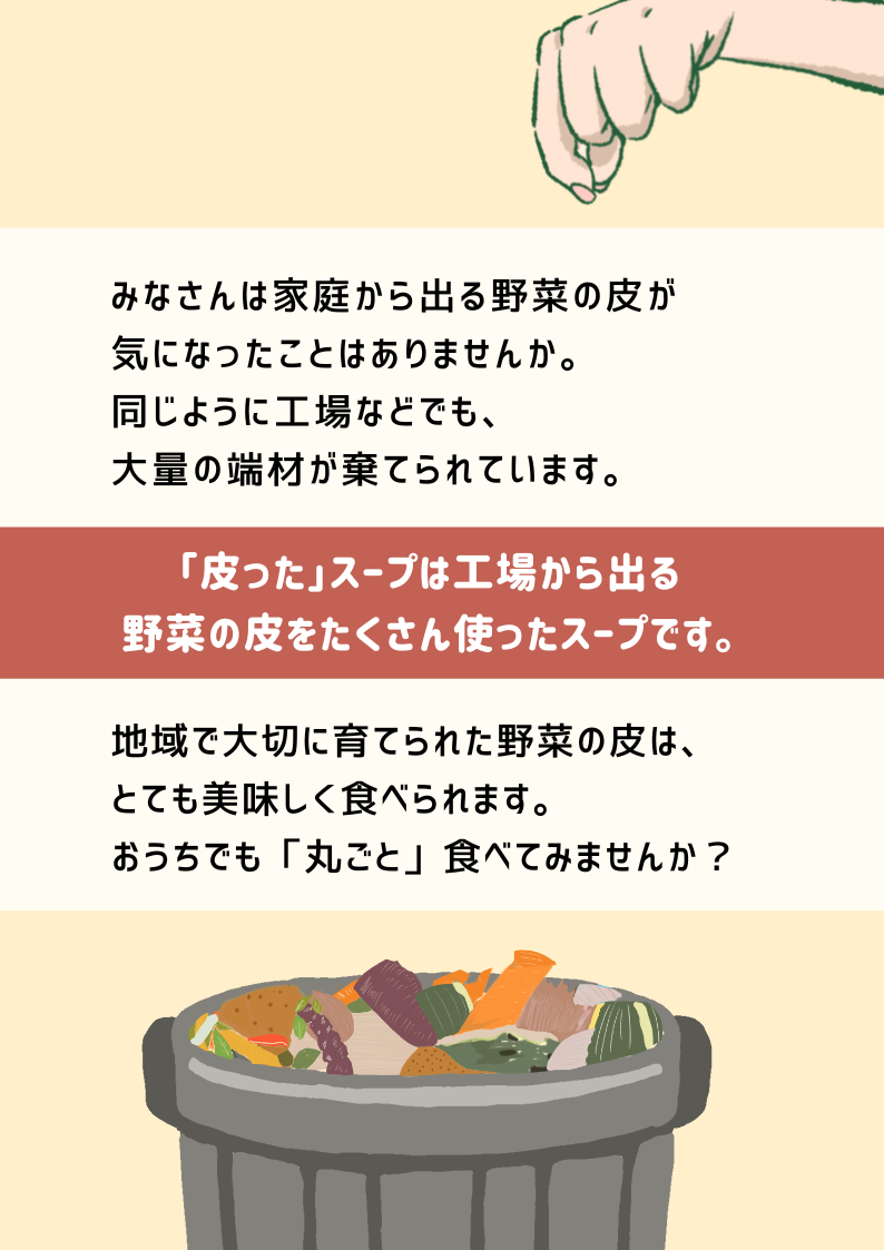 フードロス食材(食品工場で発生する野菜の皮)を使った「皮ったスープ」