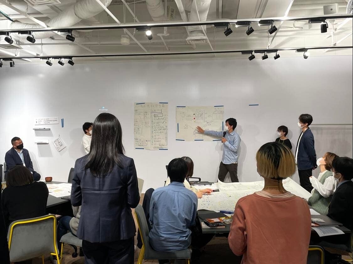 ワークショップのテーマ「食品ロスを解決するサステナブルな食」について参加者がグループワークを通してビジネスアイディアを導出。最後にグループごとに発表し、優秀賞として選ばれたグループのアイデアを、株式会社Beans監修のもと、ブラッシュアップして形にし、Beeat!!八重洲にて社会実装するという内容です。