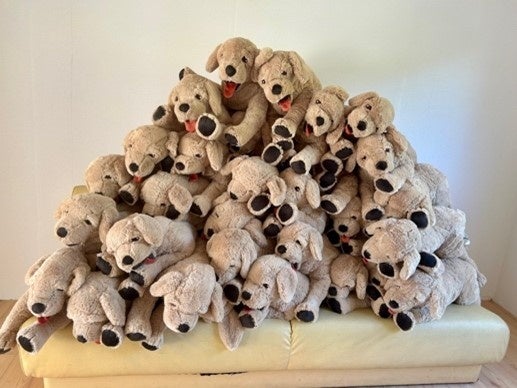 (付添犬とふれあった子どもたちにプレゼントするぬいぐるみです)