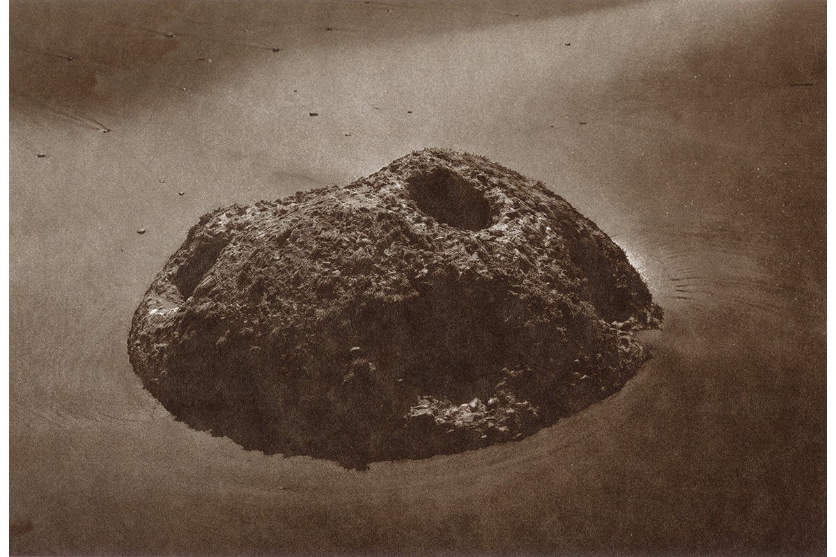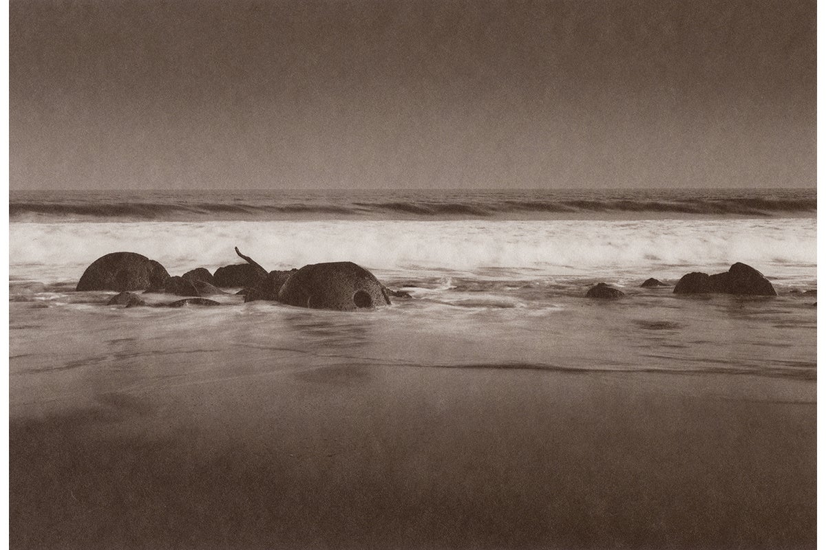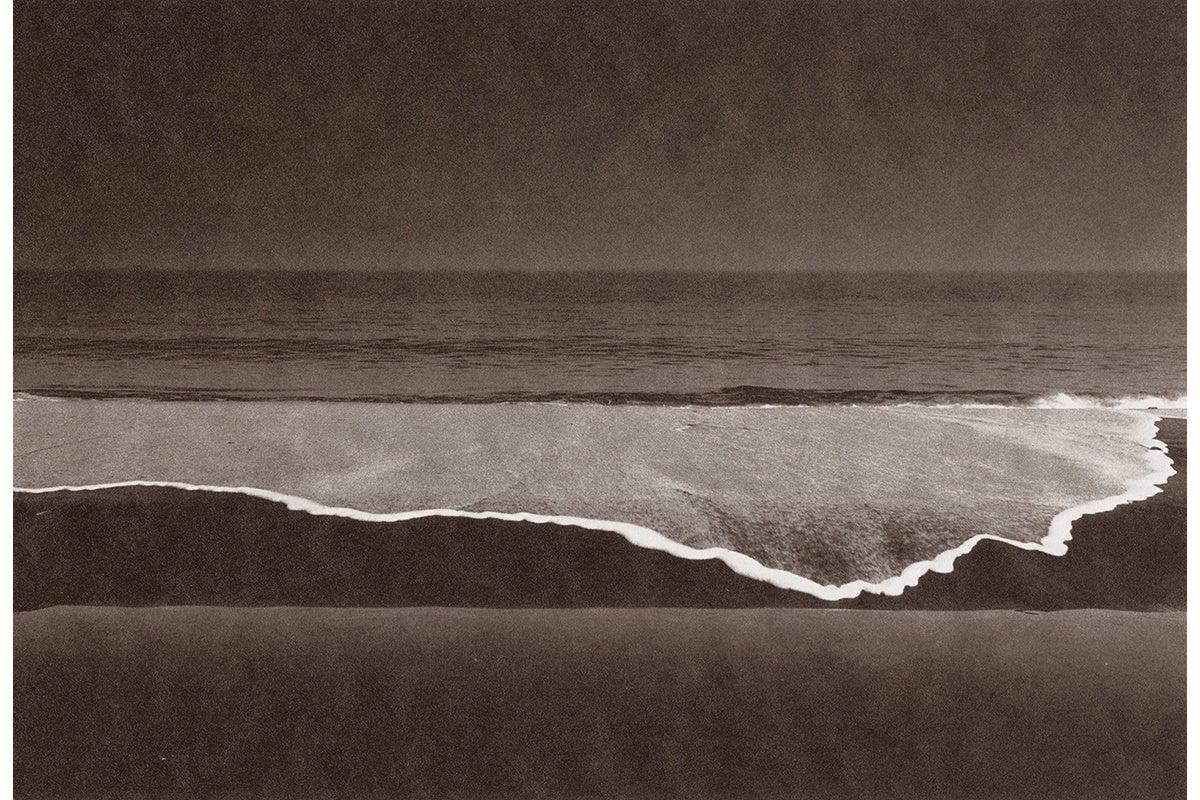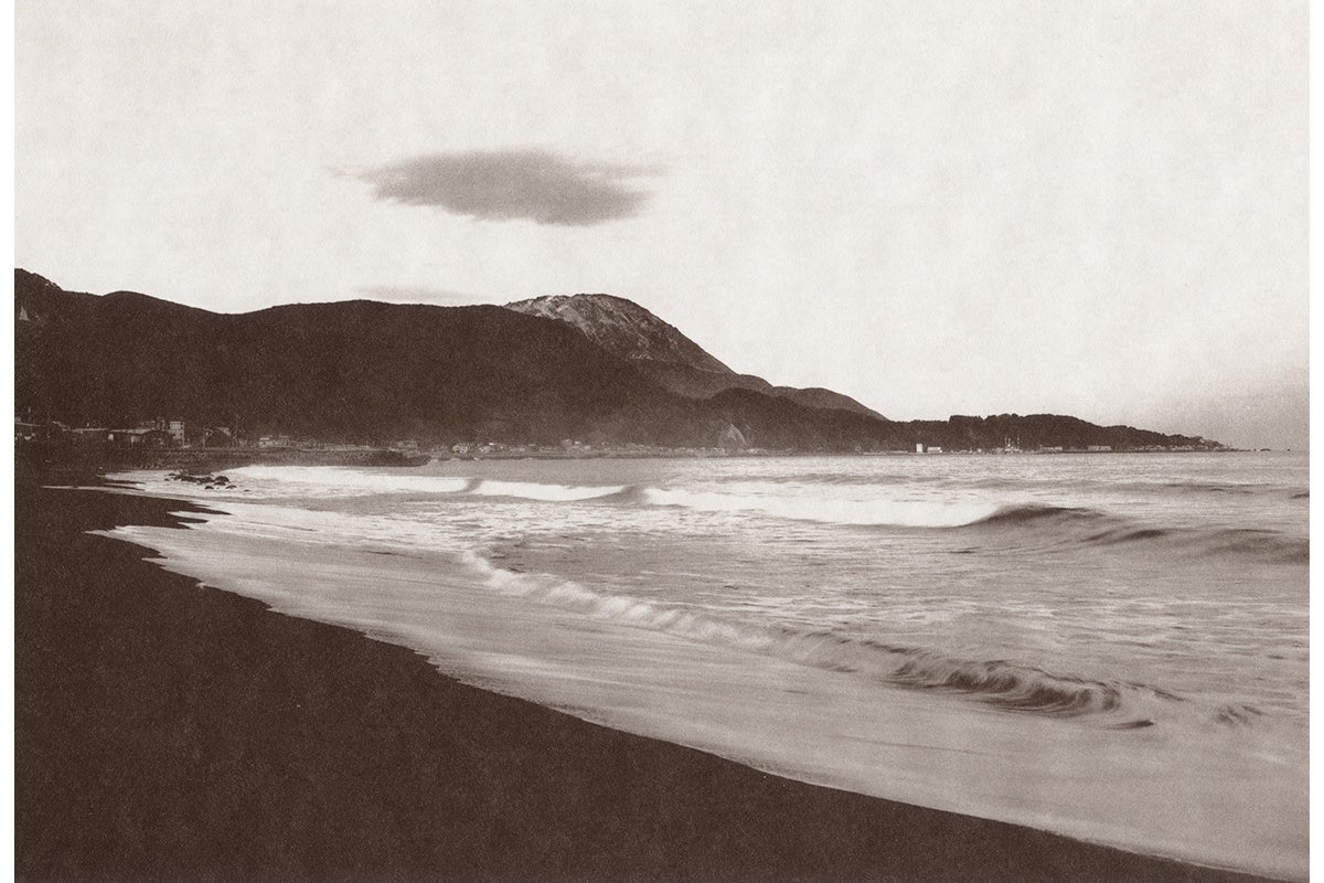 小池貴之は、津軽海峡に面する故郷の浜を大判8×10カメラと中判カメラでフィルム撮影し、「鶏卵紙」と呼ばれる19後半〜20世紀前半まで用いられていた古典印画技法を用いて作品を制作しました。現地で汲んだ海水から精製した塩を鶏卵氏に使用し、その場の風景を写した単純な光画ではなく、記憶や浜そのものの要素を内包するモノとして写真を表現しています。