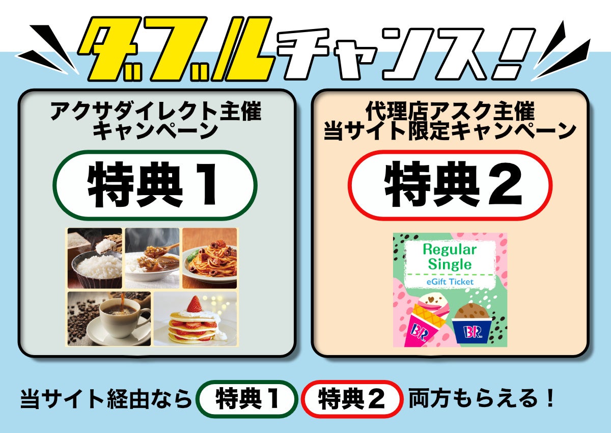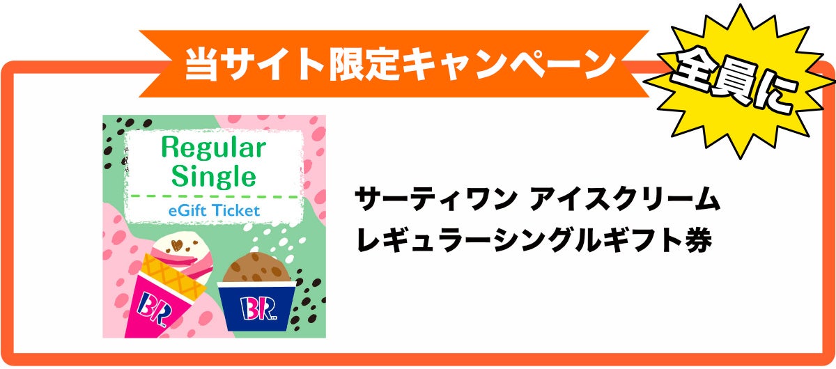 インターネットからの新規ご成約で「グルメギフト件1,000円相当」+「サーティワン アイスクリーム レギュ ラーシングルギフト券1枚」をもれなくプレゼントいたします。