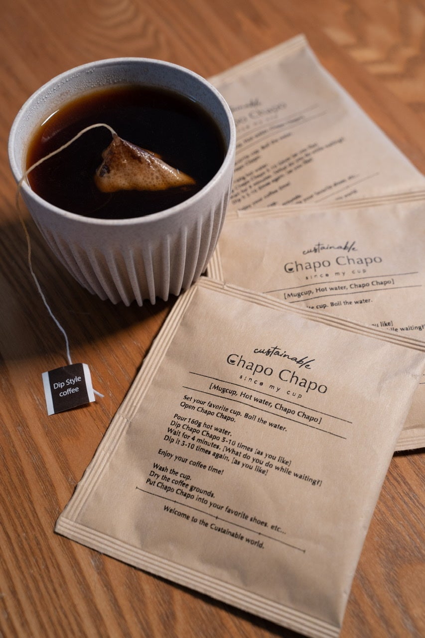 そこで今回、飲んだ後にそのまま再利用できるコーヒーバッグと、コーヒー殻で作られたカップのセットを販売することで、日常のコーヒータイムに気軽にサスティナブルを取り入れられるセットをご用意しました。