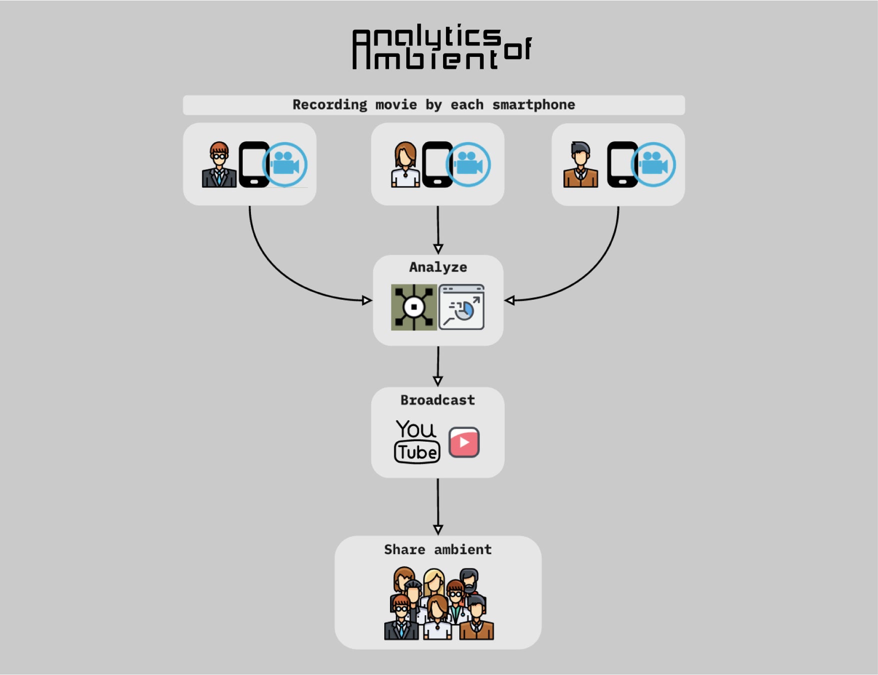 Metalium llc.が開発した動画から雰囲気の可視化をすることで普段気にも止めない個人が捉えた雰囲気をコミュニケーションの素材とすることを目的としたヴィジュアライズツール「Analytics of Ambient」を使用し、町に潜む未知の素材を元にクリエイティブコミュニケーションの実施をワークショップ形式にて行います。
