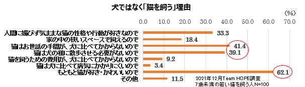 近年、猫を飼うご家族は、犬を飼うご家族より増えています※。7歳未満の猫のご家族に伺うと、「もともと猫が好きなので」という回答に加えて、「猫はお世話の手間が犬に比べてかからない」「猫は犬のように散歩させる必要がない」のも人気の理由のようです。その一方で、猫は家から出ることをいやがるため、動物病院に連れて行きにくく、ご家族が体調不良に気付いた時には既に手遅れとなっていることが少なくありません。言葉を話せず、体調不良を隠す習性がある猫の病気を早期発見するには、健康診断を定期的に受けていただくことがとても重要です。※出展:日本ペットフード協会「2021年全国犬猫飼育実態調査」