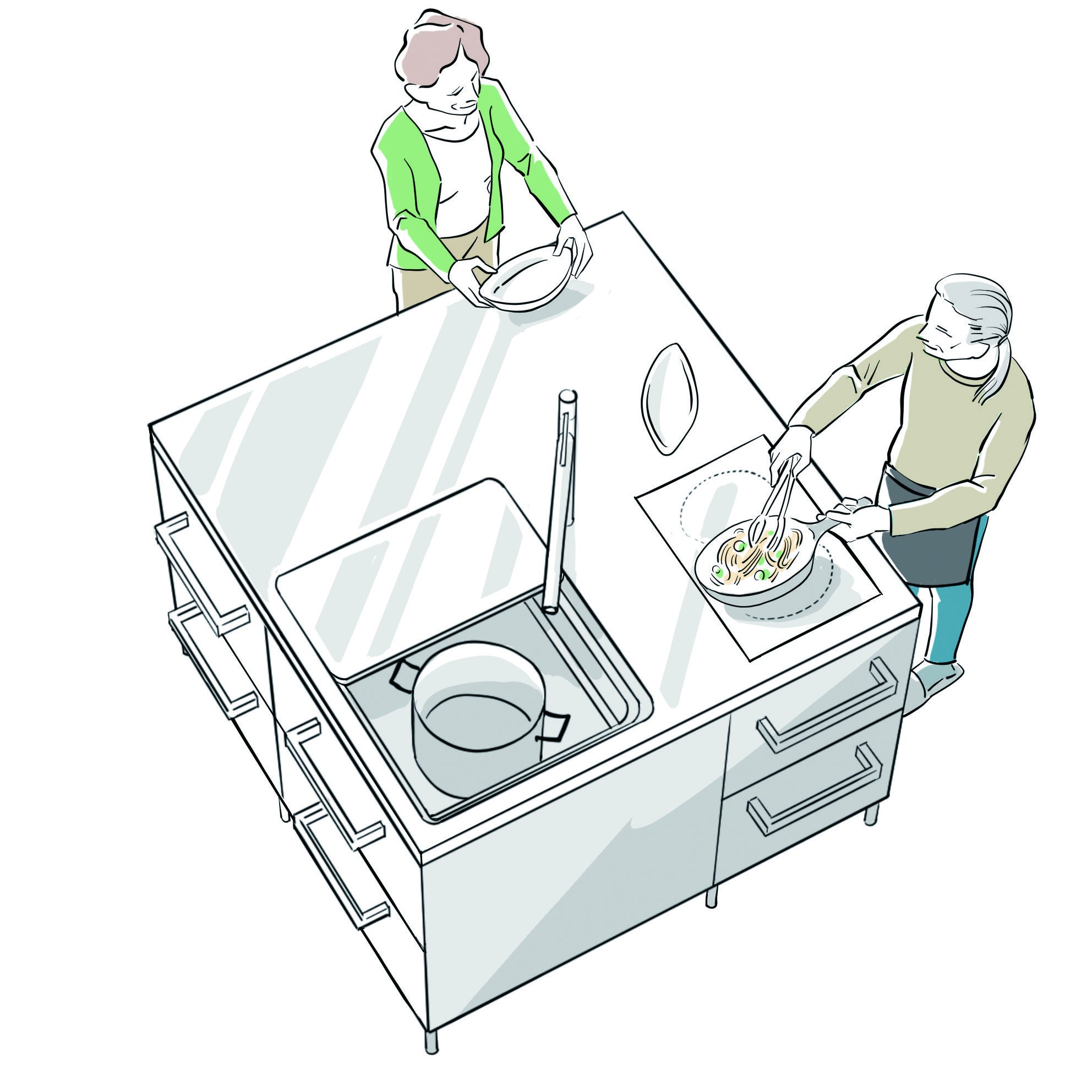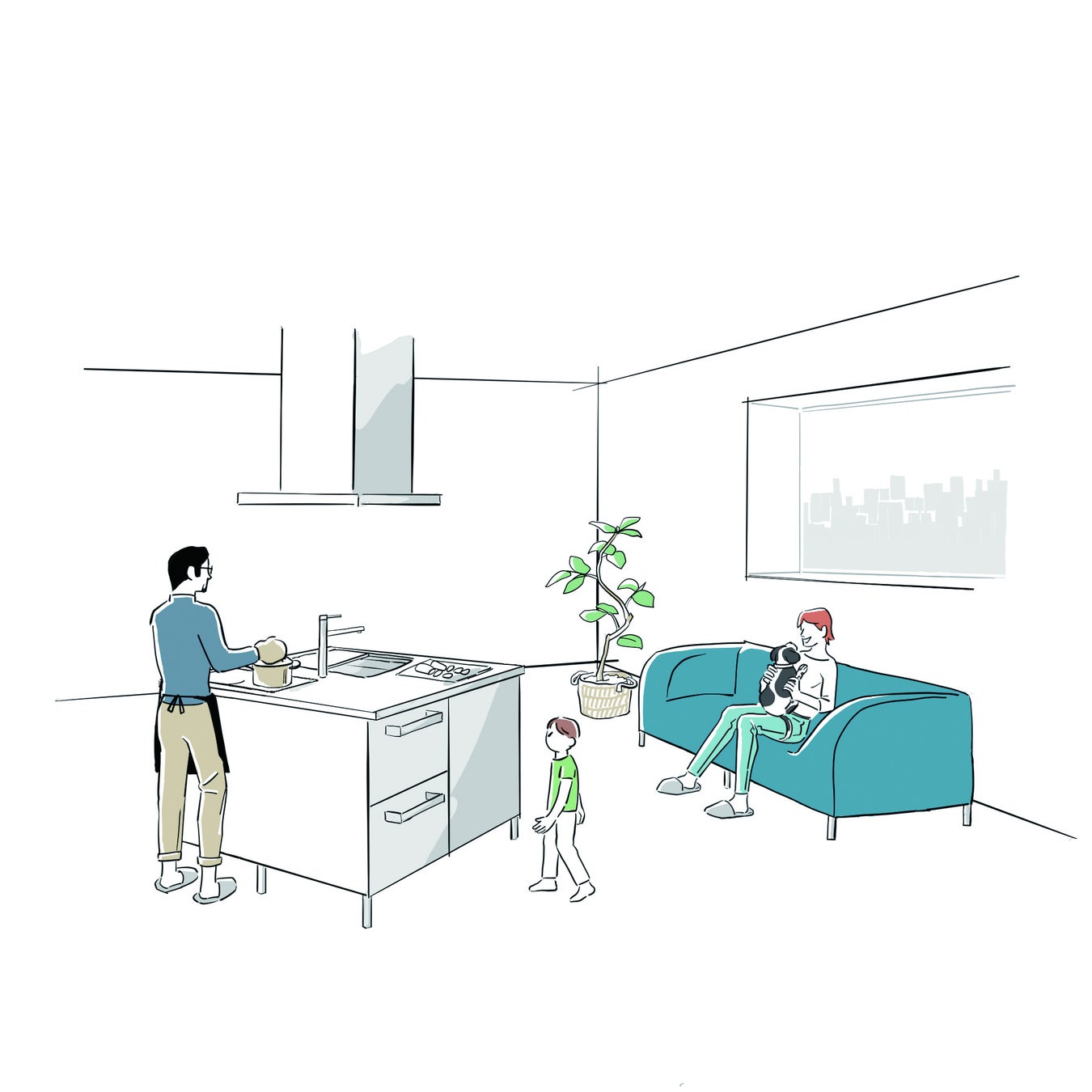 アイランド型のキッチンで暮らしの質を良くしたいけど、リフォームなどで広さに制約が… そんな時でも、キューブのコンパクトなサイズならレイアウト可能です。 子育てを終えた熟年夫婦や、DINKSの二人暮らし、2世帯住宅のアナザーキッチン、都市部のスモールライフなど、様々なライフスタイルにコンパクトなサイズがフィットします。