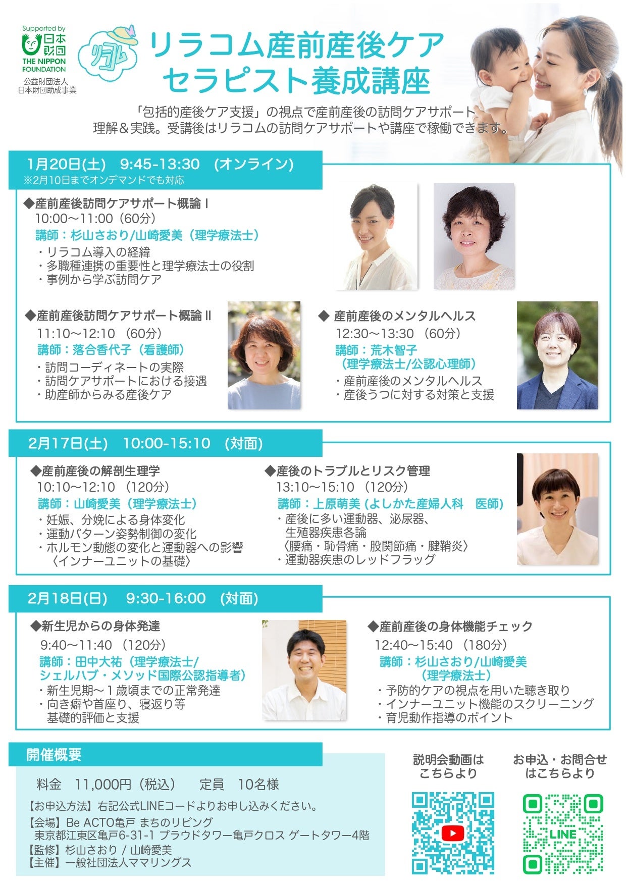 2024年1月〜2月「リラコム 産前産後ケアセラピスト養成講座」を実施!