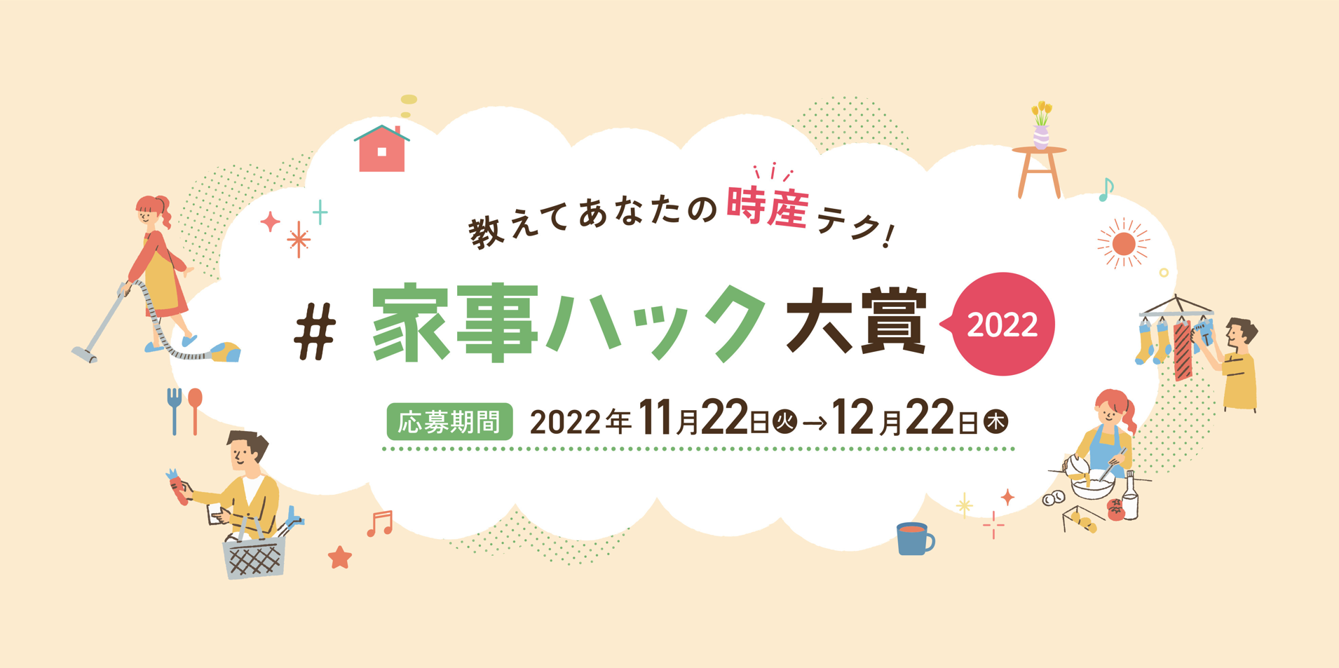 | 教えてあなたの時産テク!家事ハック大賞2022 開催 |