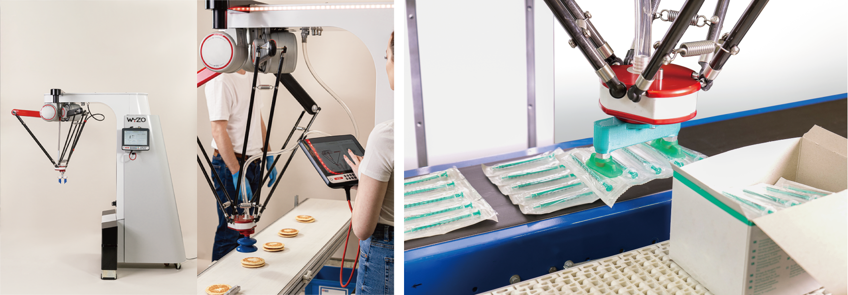 人が近づくと安全な速度まで減速し、周囲の安全が確保されているときは高速で稼働する「Wyzo」は安全柵や筐体で囲む必要がないため、設置スペースや視認性の問題でこれまでパラレルリンクロボットの投入が難しかった生産ラインにも設置することが可能になりました。