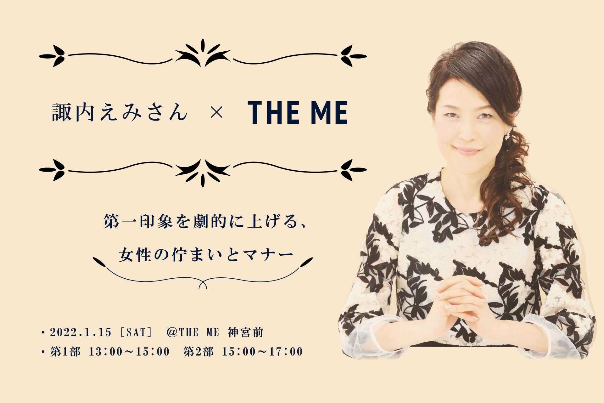 環境負荷を減らしながら満足のいく一着をお届けする「THE ME (ザ ミー)」が話題のマナー講師 諏内えみさんと「第一印象を劇的に上げる、一流女性の佇まいとマナー」レッスンを1月15日に初開催!