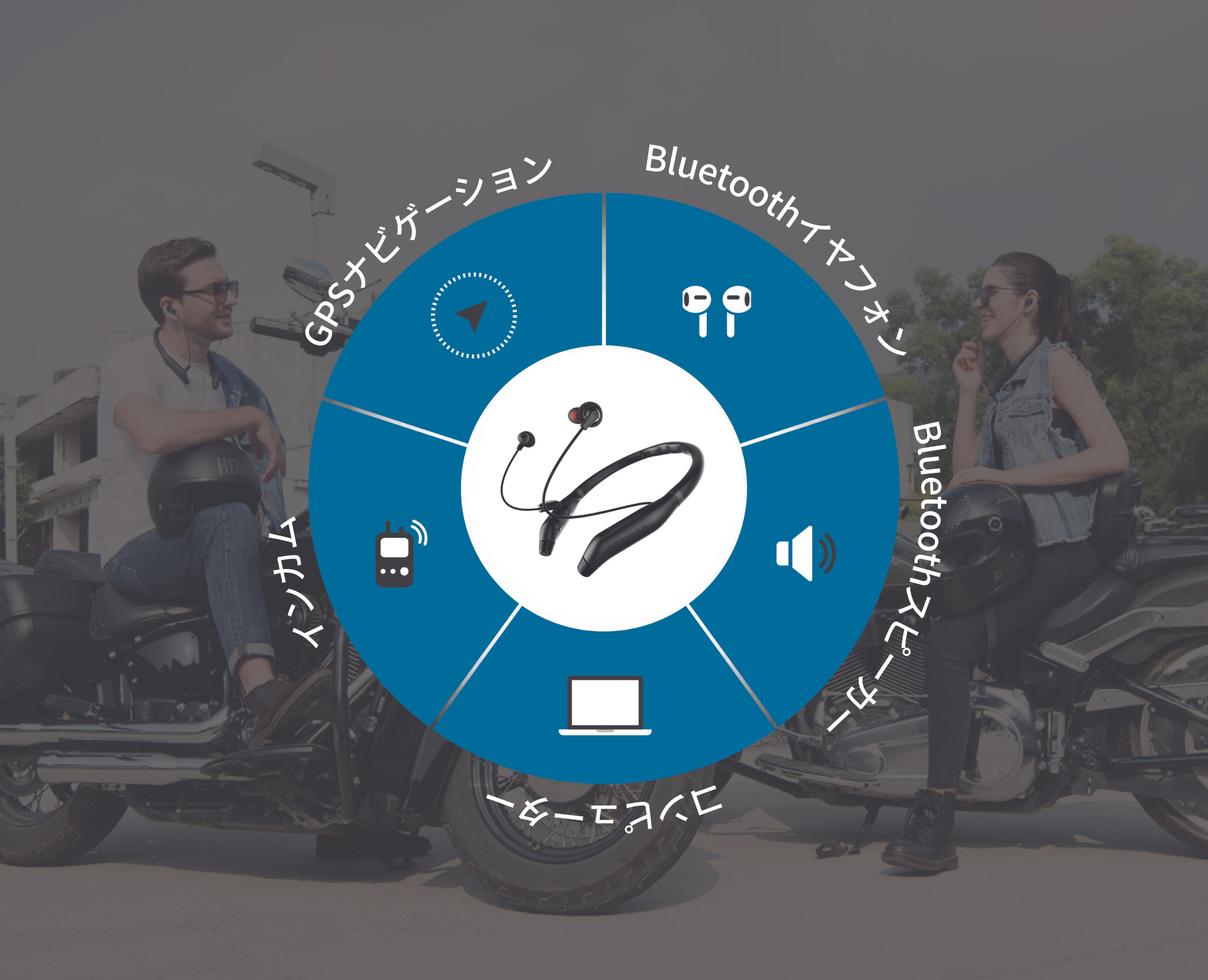 運転中に音楽を聴きたい人、インカムで仲間と話をしたい人、道に迷わないよう道案内をして欲しい人etc…。