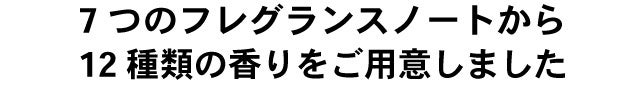 MITOは香りをドレスアップ(香り替え)する事で今とは全く違った香りを楽しむことができる新しい形(発想)のルームフレグランスです。7つのフレグランスノートから、それぞれの特色を生かした12種類の香りをご用意致しました。