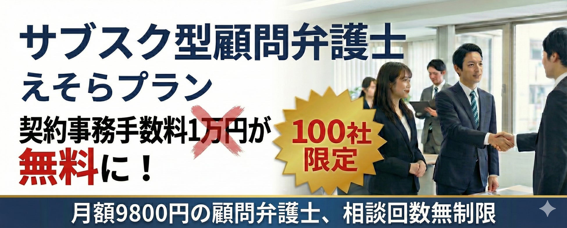 弁護士法人えそらは、今回の受賞を記念して、100社限定で契約事務手数料1万1000円を無料とするキャンペーンを実施する。キャンペーン期間は2025年12月10日よりスタートし、先着100社まで継続する。