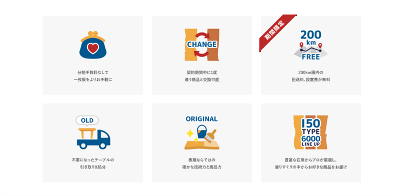 ITAKURA SUBSCRIPTIONの一枚板は、板蔵ファクトリー㈱がノウハウを結集して作り出した一枚板家具シリーズ「板蔵」の一枚板製品と全く同じ製造工程、品質の製品であり、定額制サービスであっても高い満足度をご提供できます。