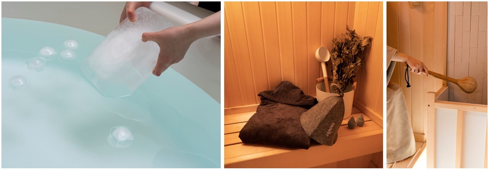 客室に冷水浴用の氷をお届け、サウナハットでプライベートサウナを満喫