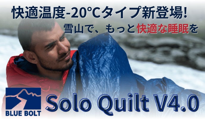ヒマラヤ山脈を裏庭に持つインドのアウトドアメーカー:BLUE BOLT(ブルーボルト)の日本総代理店:株式会社NAIA TRADE(ナイアトレード、本社:熊本県熊本市、代表取締役:田島千絵)は、2022年2月8日(火)12:00より、-20℃でも快眠「Solo Quilt(ソロキルト ) の応援購入プロジェクトをMAKUAKEにて開始しました。