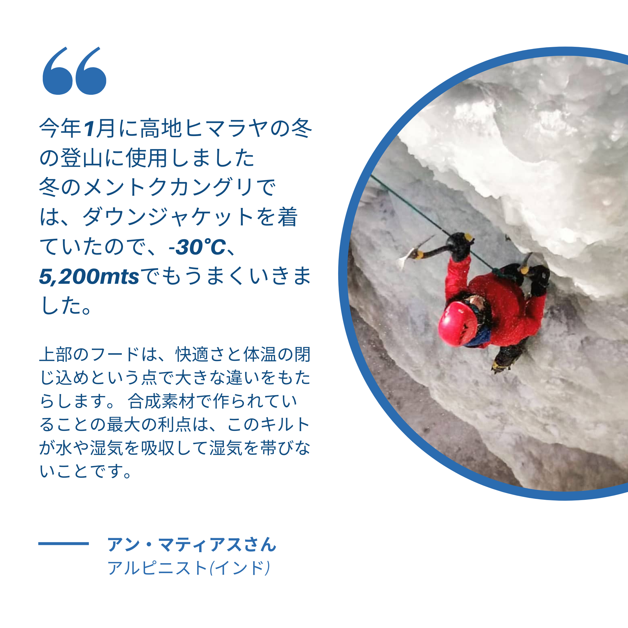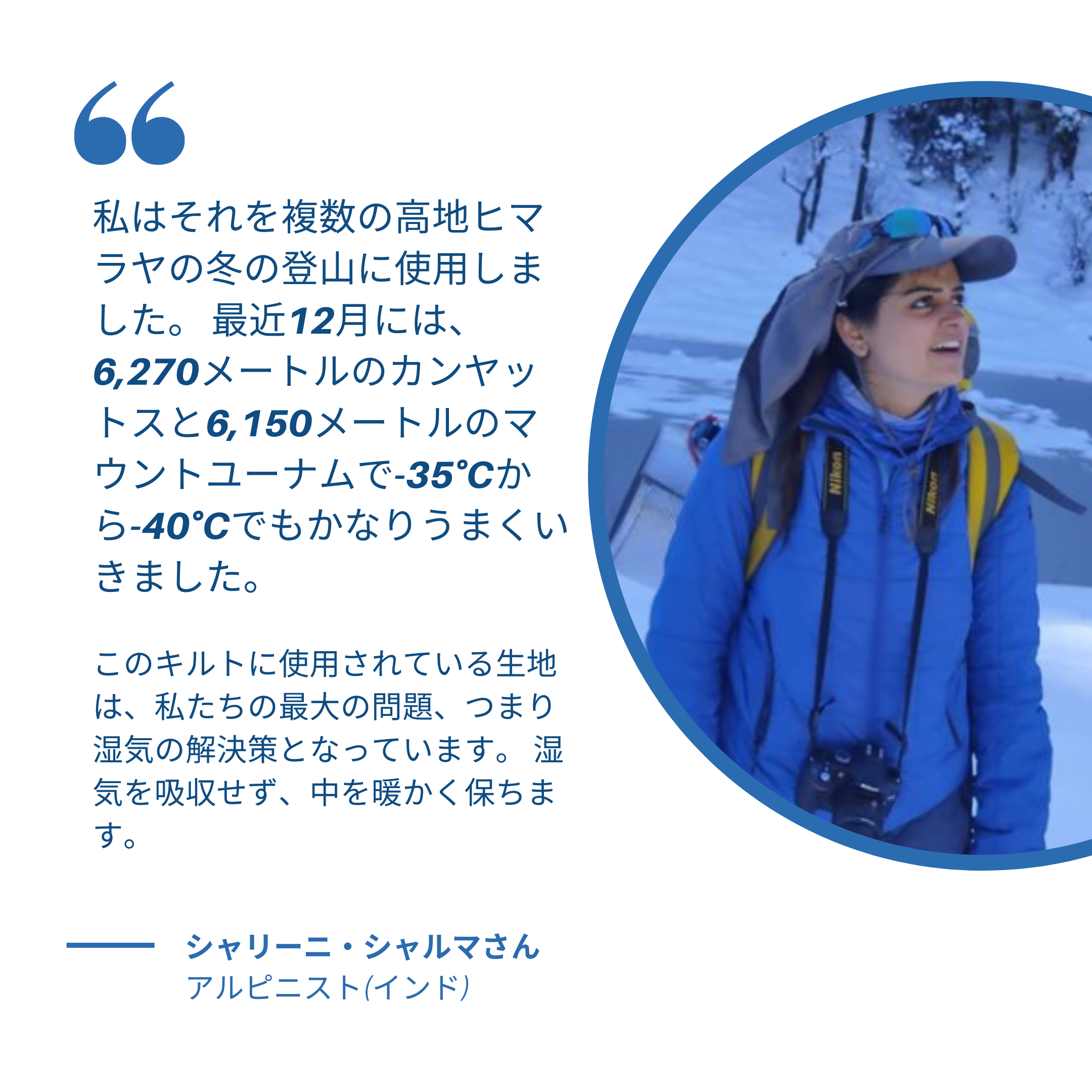 湿気が多く、天候が変わりやすいヒマラヤ山脈で快適なアウトドアを実現するために、長い時間テストを行い、多くの冒険家から、多大なる支持を受けることに成功しました。