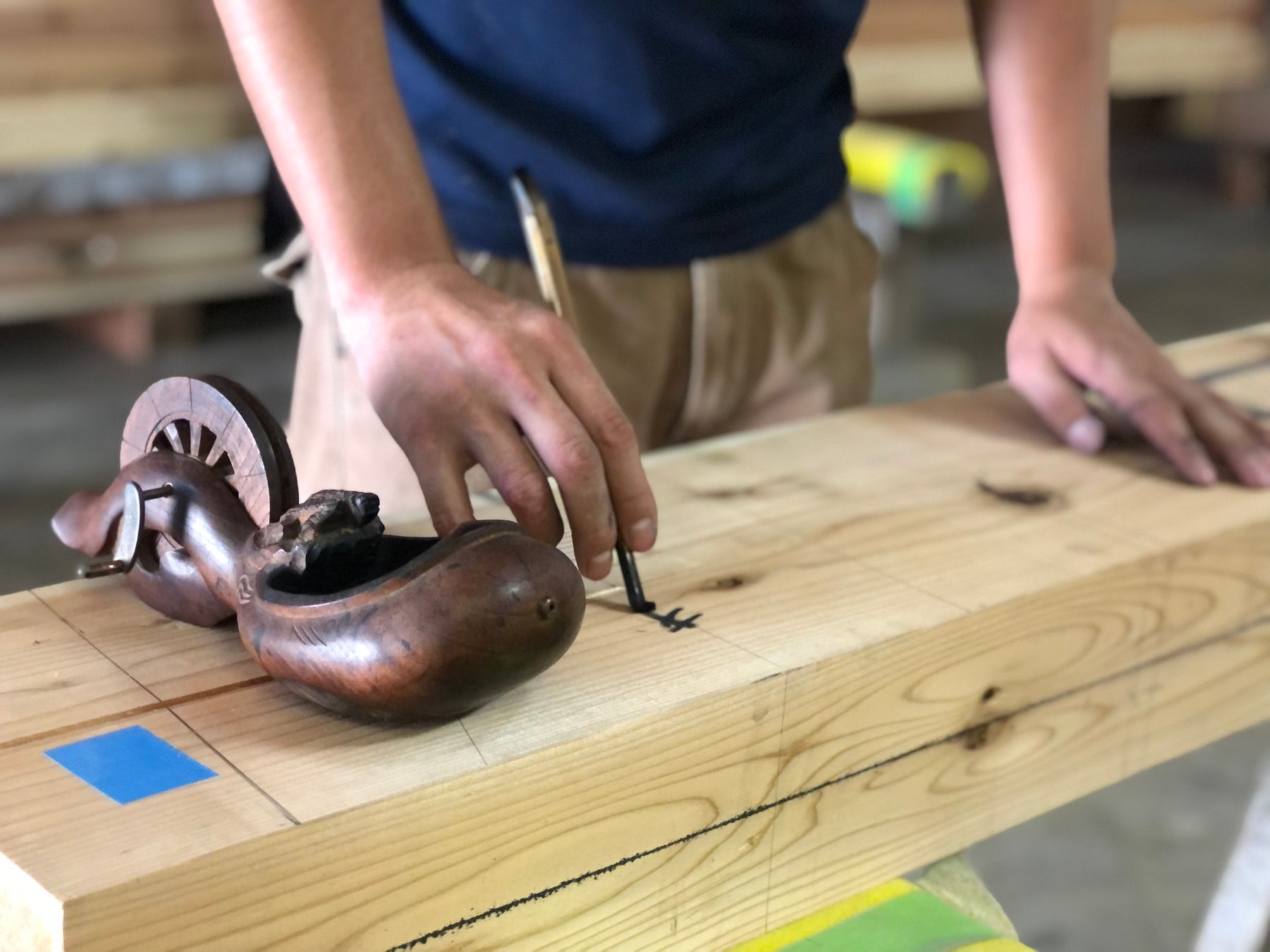 手で刻むと書く「てきざみ」とは、家づくりに使う木材の接合部分を手仕事で加工する大工の技術を指します。新築はもちろんのこと、とりわけ、住宅の改修において、古い部材と新しい部材を接合する際などに材木や家の癖に合わせた手加工が必要となり手刻みの知識と技術が必要となります。