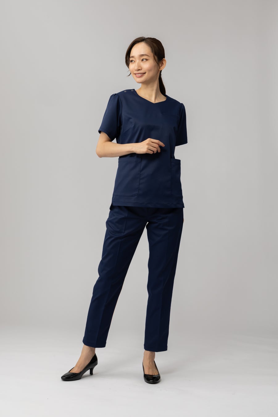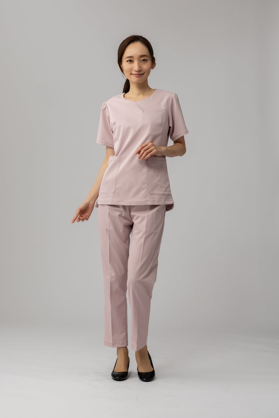 「レディース スクラブ ギャザースリーブ」と同素材でセットアップで着用可能。