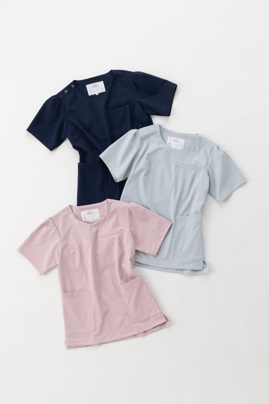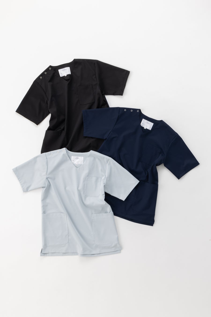 レディース スクラブは、かわいいスクラブが欲しいという声を受け、ピンクや淡いグレーの生地を使用し、ギャザースリーブやネックラインなどのデザインディテールを施し、ファッション性が高くフェミニンなデザインに仕上げました。メンズ スクラブは、デザインはシンプルでどこの病院でも着用できるVネックの定番スタイルですが、色がポイントです。以前は医療業界ではあまり利用されていませんでしたが、最近人気が高まっている黒やグレーのスクラブをつくりました。人気のネイビーとあわせて、男女それぞれ3色展開で販売します。スクラブを着用する医師の方々が昨今増えていますので、今後もスクラブの販売を強化していきたいと考えております。」
