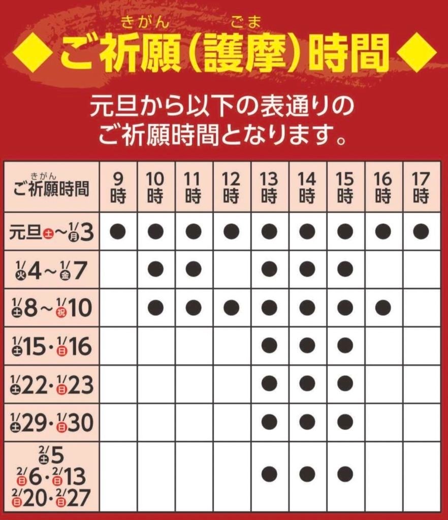 埼玉厄除け開運大師では元旦9時より厄除け・大開運・方位除け等の護摩祈願を厳修致します。