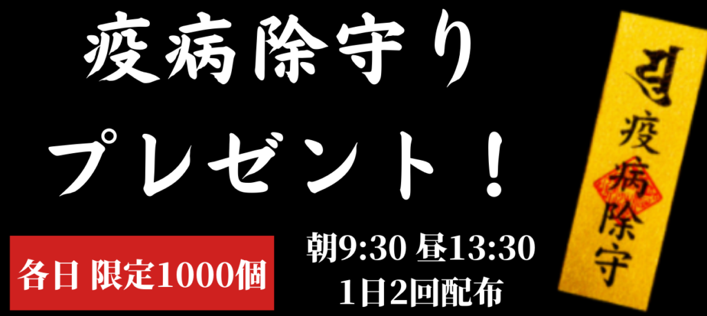 正月3が日限定で「疫病除守り(新型コロナ除け)」をプレゼントいたします。