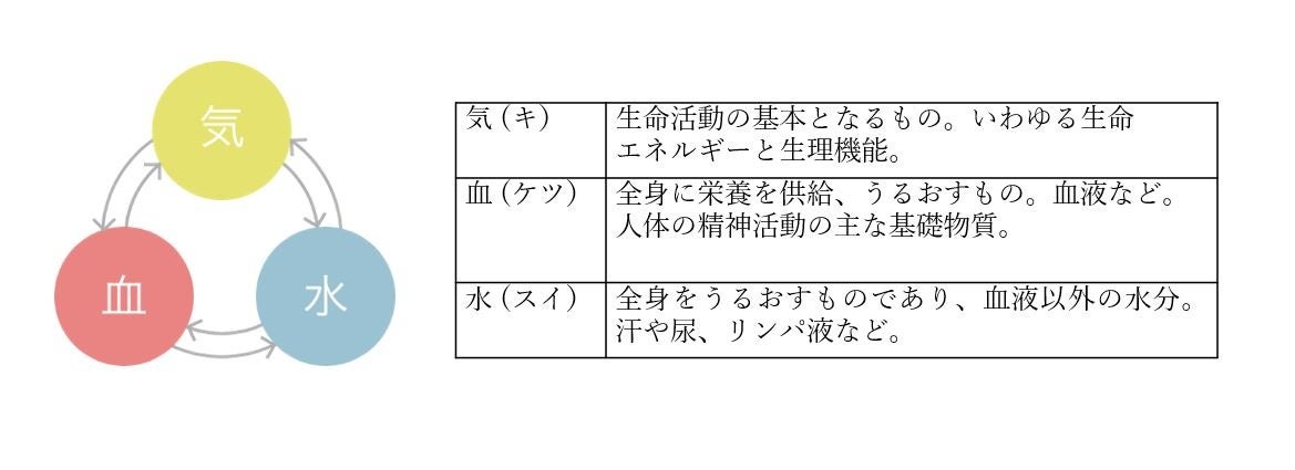 漢方的視点で身体は「気」「血」「水」の3要素で構成されています。