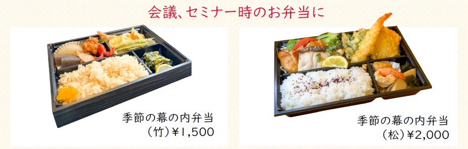 重要な会議・セミナーには、季節の幕の内弁当がオススメ。価格帯は幅広くご対応します。