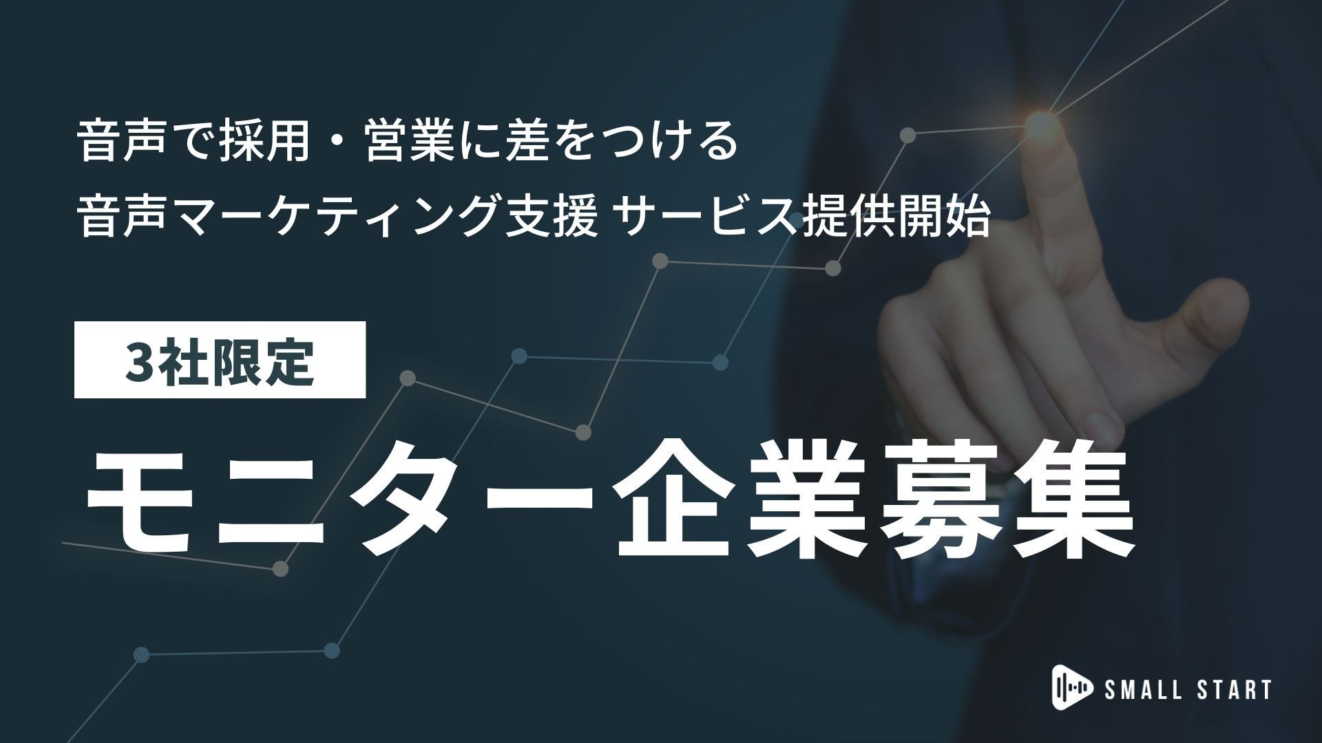 株式会社スモールスタート(本社:東京都板橋区、代表取締役:石田 啓、以下「スモールスタート」)は、2023年1月30日に音声配信支援サービス(https://radio.small-start.jp)」を正式リリースしました。あわせて、通常よりお得な契約条件でサービスをご利用できるモニター企業を3社募集いたします。