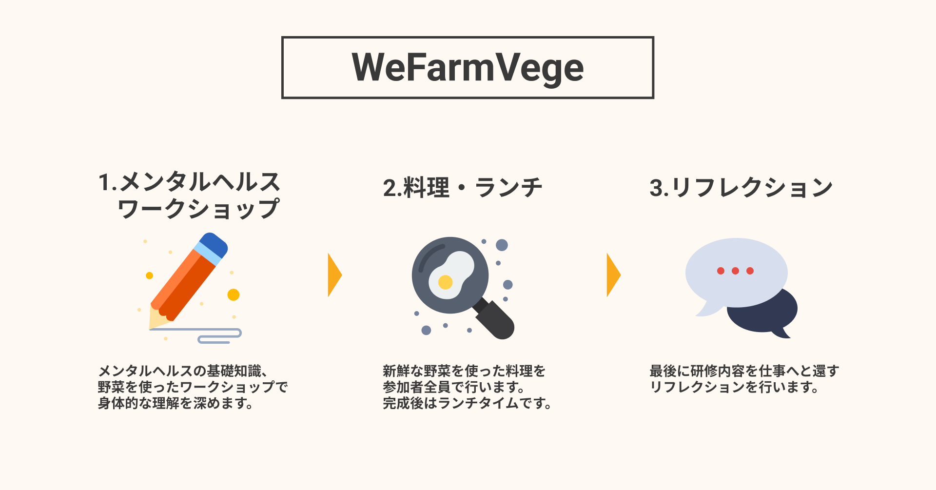 株式会社Flourishingではこれまで農業体験を通したメンタルヘルス研修「WeFarmBiz」(https://thewefarm.com/biz)を千葉県の農園で提供してきました。その中で企業様から場所にとらわれない形でメンタルヘルスの研修を利用したいというお声をいただきオンライン研修「WeFarmVege」が誕生しました。