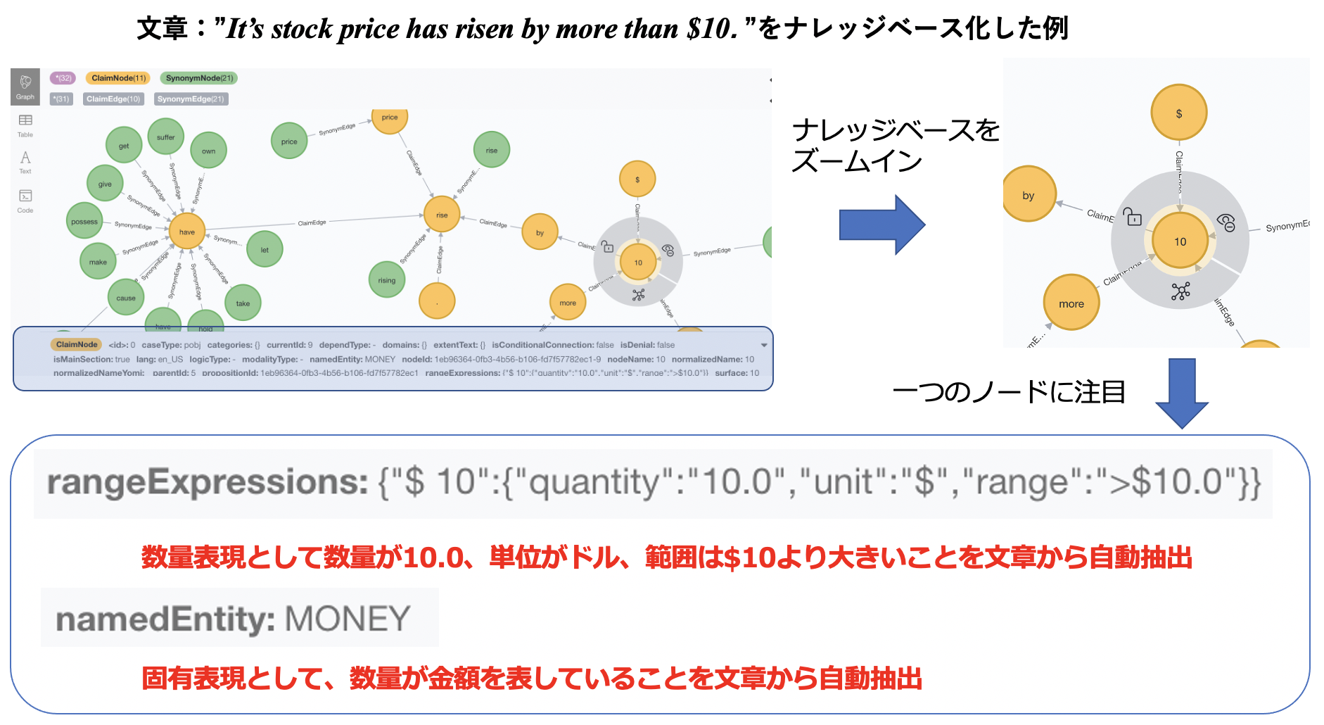 - 日本語同様、自然言語処理で有用な固有表現、類義語、数量表現も自動抽出しナレッジベース構築します。