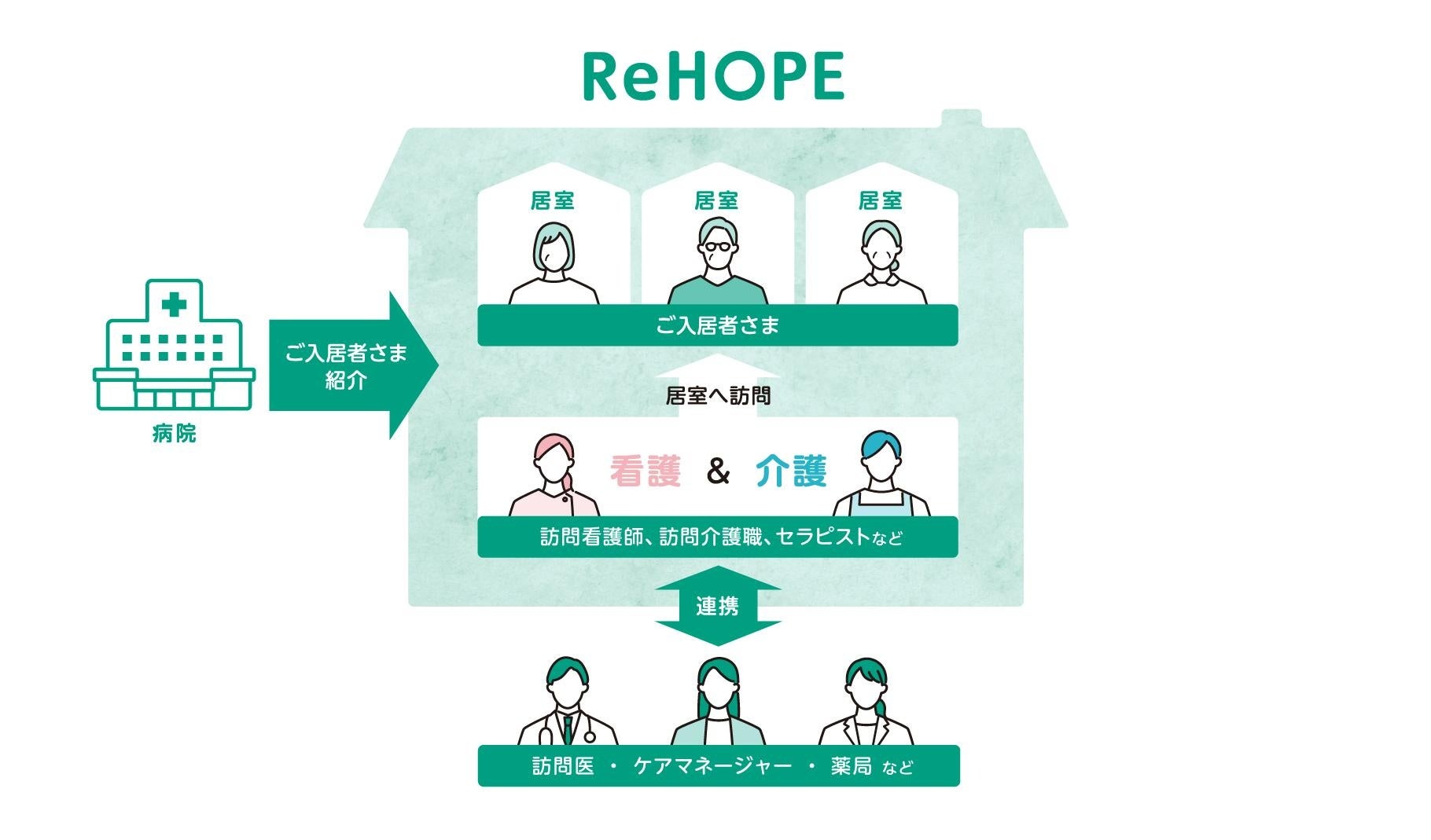 ReHOPEは、看護と介護の密な連携体制を有する施設として、2017年の創業以来、末期がんや筋委縮性側索硬化症(ALS)、パーキンソン病、多系統萎縮症など、17症例2,000名以上の方々を受け入れてきました。