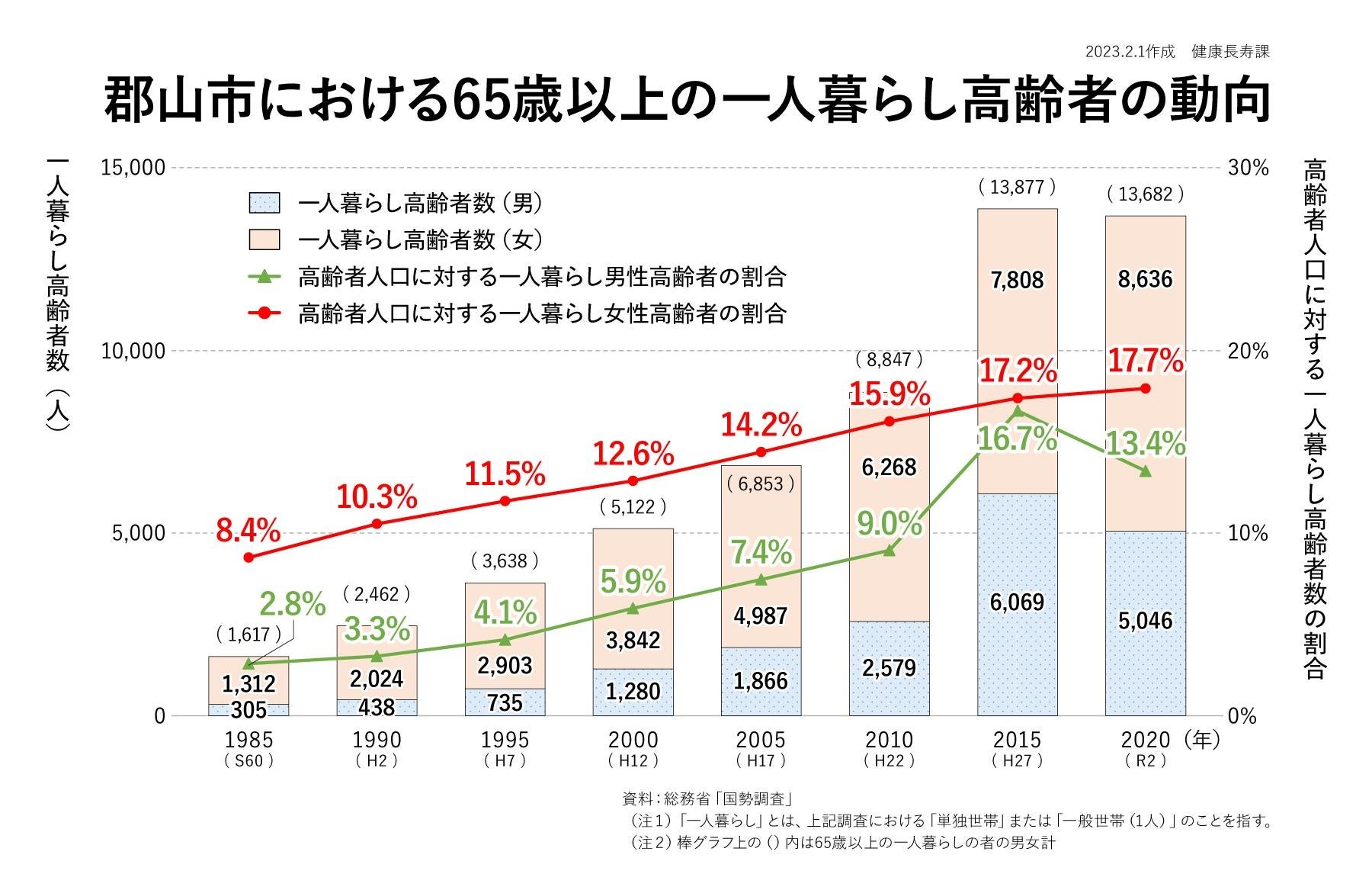 ※出典:「郡山市における65歳以上の一人暮らし高齢者の動向」(郡山市 健康長寿課 作成)