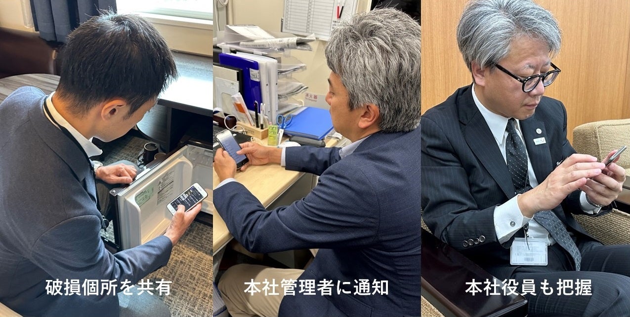 HoteKanを導入してからは、破損個所を写真で撮影して、その場で報告・共有が行えます。