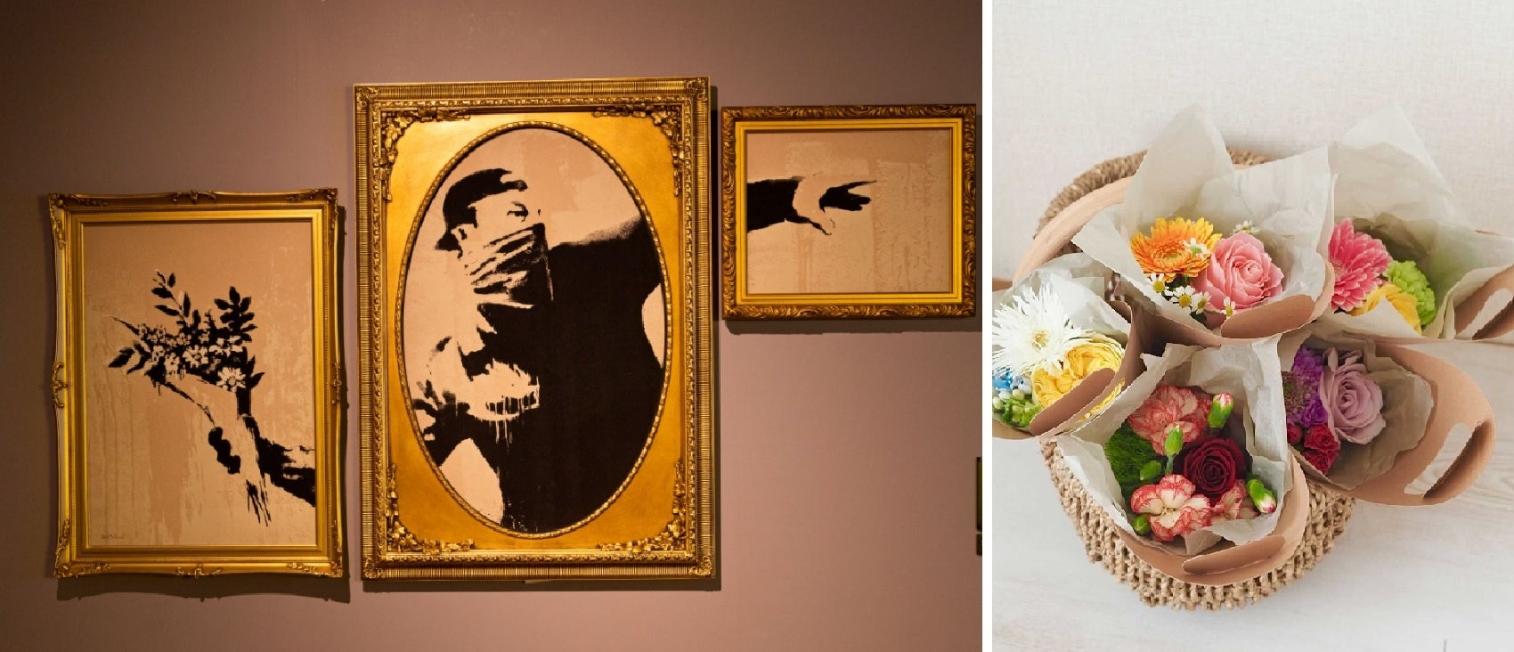 ≪世界を巡回する300万人動員の展覧会、遂に東京へ≫『BANKSY GENIUS OR VANDAL?(バンクシー展 天才か反逆者か)』年末年始は、バンクシー展から「愛をこめて花束を」