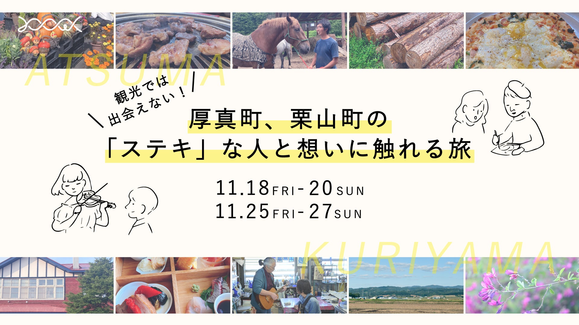 株式会社とける(代表:柴田涼平 所在地:厚真町)は、北海道厚真町と栗山町の新たな関係人口創出を目的とした2町をまたぐツアーを2022年11月18日(金)〜20日(日)と11月25日(金)〜27日(日)に開催いたします。