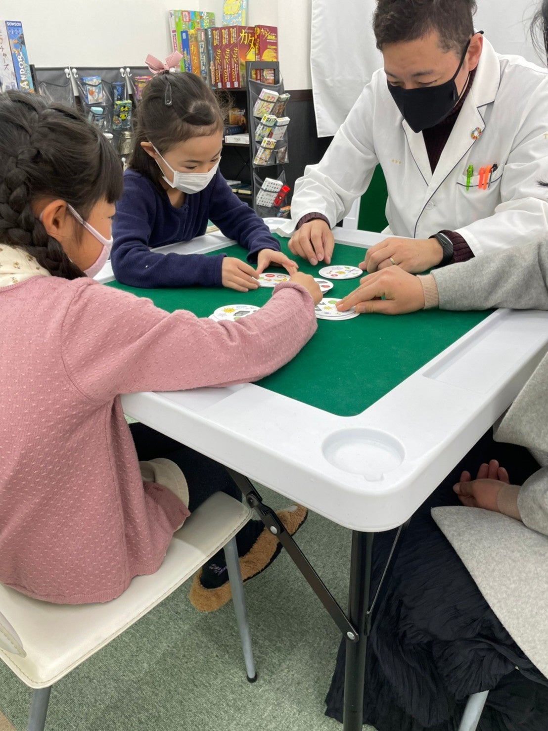 そんななか、2014年、娘が生まれました。「塾屋」で勉強を教える対象は小学1年生からです。したがって、幼児期における知育経験はありませんでした。どういう方針で育てていけばよいか、私たち夫婦が考えたのが、「娘の健康と脳(頭)に良いことをさせたい」ということでした。とはいえ、その両方を満たすような習い事はなかなか見つかりません。試行錯誤する中でたまたま見つけたのが、ボードゲーム“ドブル”でした。正直、それまでの私における知育玩具のイメージは、例えば将棋など、大人や年長者が有利であるもの、といった印象でしたが、いざやってみると娘が大勝利。衝撃を受け、すぐさま「塾屋」でも生徒たちと共にやってみることにしました。手加減しているわけではないのに、大人が勝てません!しかも、大人・子ども全員が楽しんでやっていて「もう1回やろう」が止まらないのです。さらにびっくりしたのは、ゲームが終わるごとに“脳が疲れる”感覚。つまり、脳を使っている=脳が鍛えられているということです。この経験を機に、私たちは様々なボードゲームを試すようになりました。そして気づきます。
