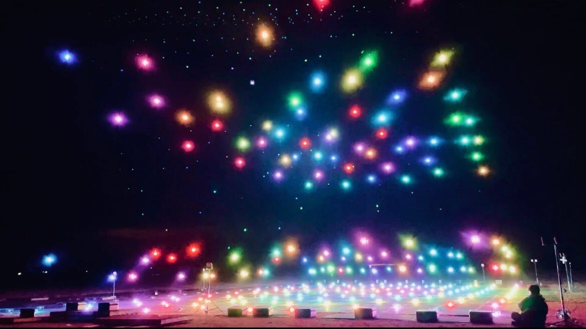 LEDのついたドローン300機が夜空を彩る、クリスマスドローンショー。