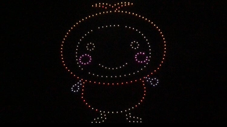 ドローンショーが始まると音楽に合わせて、かみしほろ名物である「熱気球」やマスコットキャラクターの「ほろんちゃん」が夜空に映し出された。