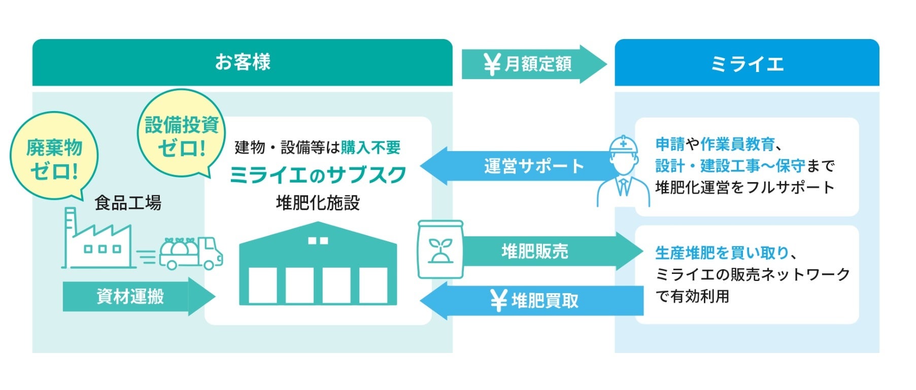 食品業界初、初期投資ゼロで食品残渣の堆肥化運営をフルサポートするサブスクサービスを開始 環境機器開発ミライエ