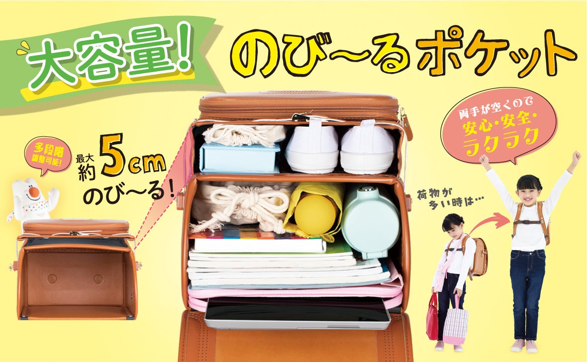 人気機能の最大5cm伸びる拡張型ポケット「のび~るポケット」。