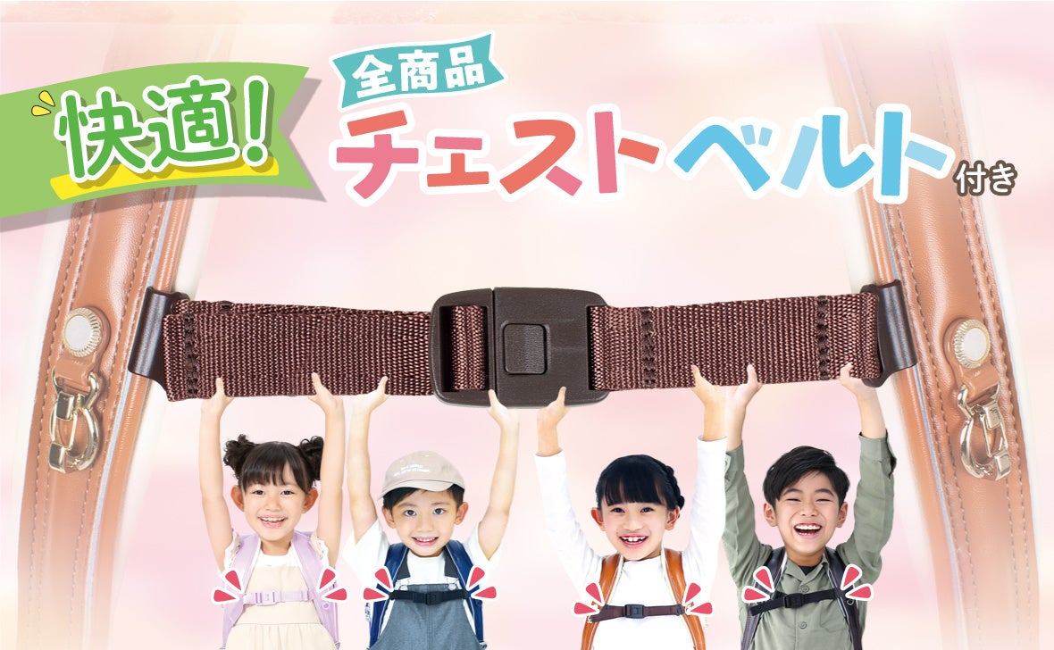 ふわりぃランドセルならではの特徴的な機能である「チェストベルト」は、全商品に標準装備されています。