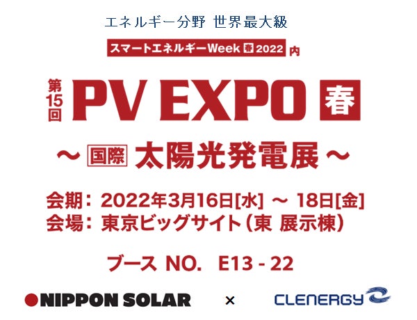 展示EXPO:第15回【国際】太陽光発電展 『PV EXPO 2022』 https://www.pvexpo.jp/ja-jp.html